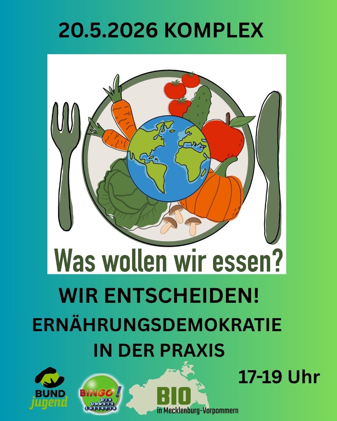 Ernährung und Demokratie Veröffentlicht am 26. April 202626. April 2026 Ernährung und Demokratie von Komplex Schwerin 1 1 people viewed this event. tba Für Veranstaltung registrieren Um dich für diese Veranstaltung zu registrieren, besuche den folgenden Link: https://komplex-schwerin.de/keine-registrierung-notwendig/ → Datum und Uhrzeit 20.05.2026 @ 17:00 bis 20.05.2026 @ 19:00 Ort Komplex Schwerin Share With Friends Facebook Twitter LinkedIn Xing Pinterest